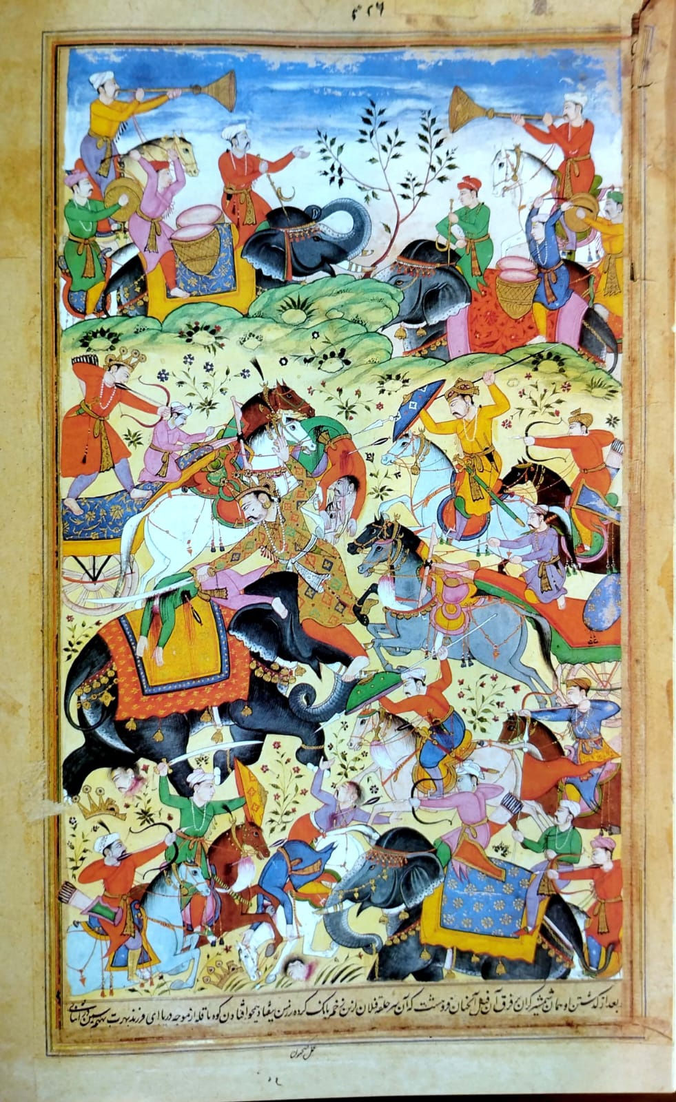 The Razmnama stands out as a unique blend of indigenous Indian and Persian artistic styles and a testimony to the subcontinent's long tradition of Hindu - Muslim harmony.
