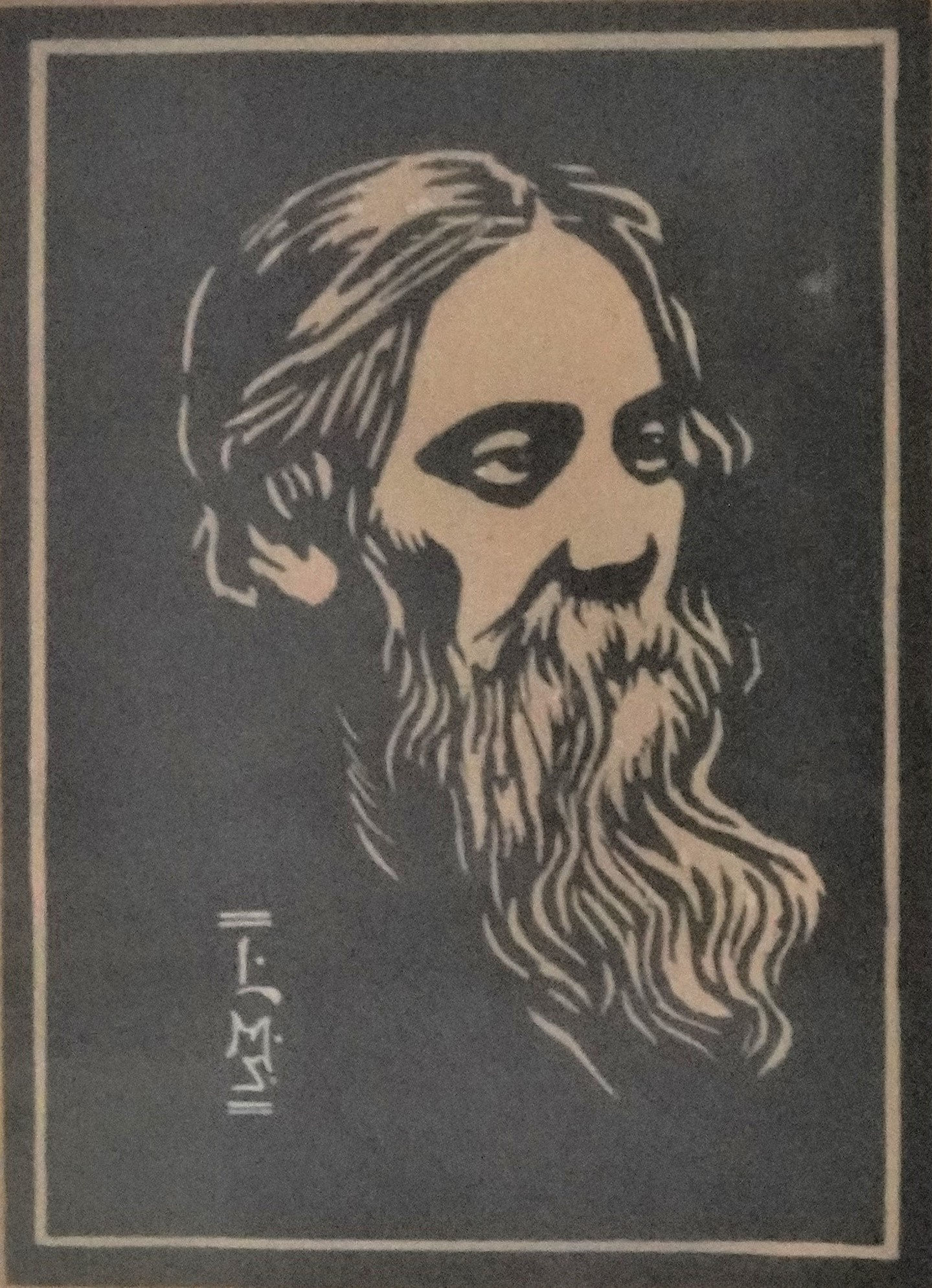 Besides his artistic identity, L.M Sen was also a photographer. It is quite understandable why an academically trained artist would feel an affinity with photography. An artist’s desire to reach the epitome of realism is fulfilled in photography. Lalit Mohan’s photographic venture in rural India might have been charged by his wish to discover the various aspects of beauty through ethnographic documentation. His woodcut and linocut prints on tribal life could have been translated from those photographs. Lalit Mohan also designed many book covers and illustrated books on different genres. Undoubtedly, Lalit Mohan claims immortality through the brilliance of his portraits. In his 1936 work, ‘European Lady’, he showed his mastery in the treatment of pastels. Gandhi and Rabindranath’s portraits in print are done with strong dark and white distribution, making them stand out.